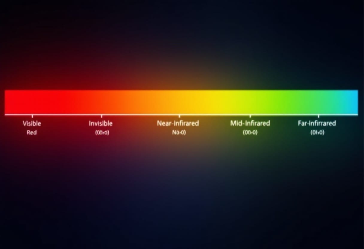 Infrared light covers a very broad swath of the spectrum, starting with near-infrared light beginning the upper end of its spectrum at around 700nm, and stretching out into much longer wavelengths thorough mid-infrared light and on through far-infrared light, which tops out at about 1,000,000nm.